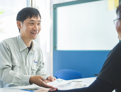 お客様との最前線で信頼関係を築くのが営業部⾨の役割です。製品のご提案や納期の調整、技術部⾨との連携を通じて、お客様のニーズに応える最適なソリューションを提供。