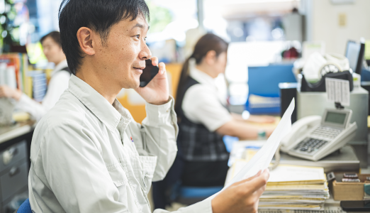 受注から納期管理、材料⼿配や生産スケジュールの調整など、製造現場とお客様をつなぐ大切な役割を担うのが業務部門です。現場との連携も多く、社内外の「人」と「モノ」の流れをコントロールするポジション。計画を立てて動くのが得意な方、人とのコミュニケーションが好きな方に向いています。